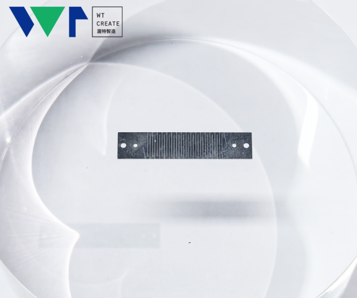 材料特點:材料厚度<0.3mm,縫寬50um加工優勢:切縫光滑無崩邊,幾乎無錐度,零件無翹無變形